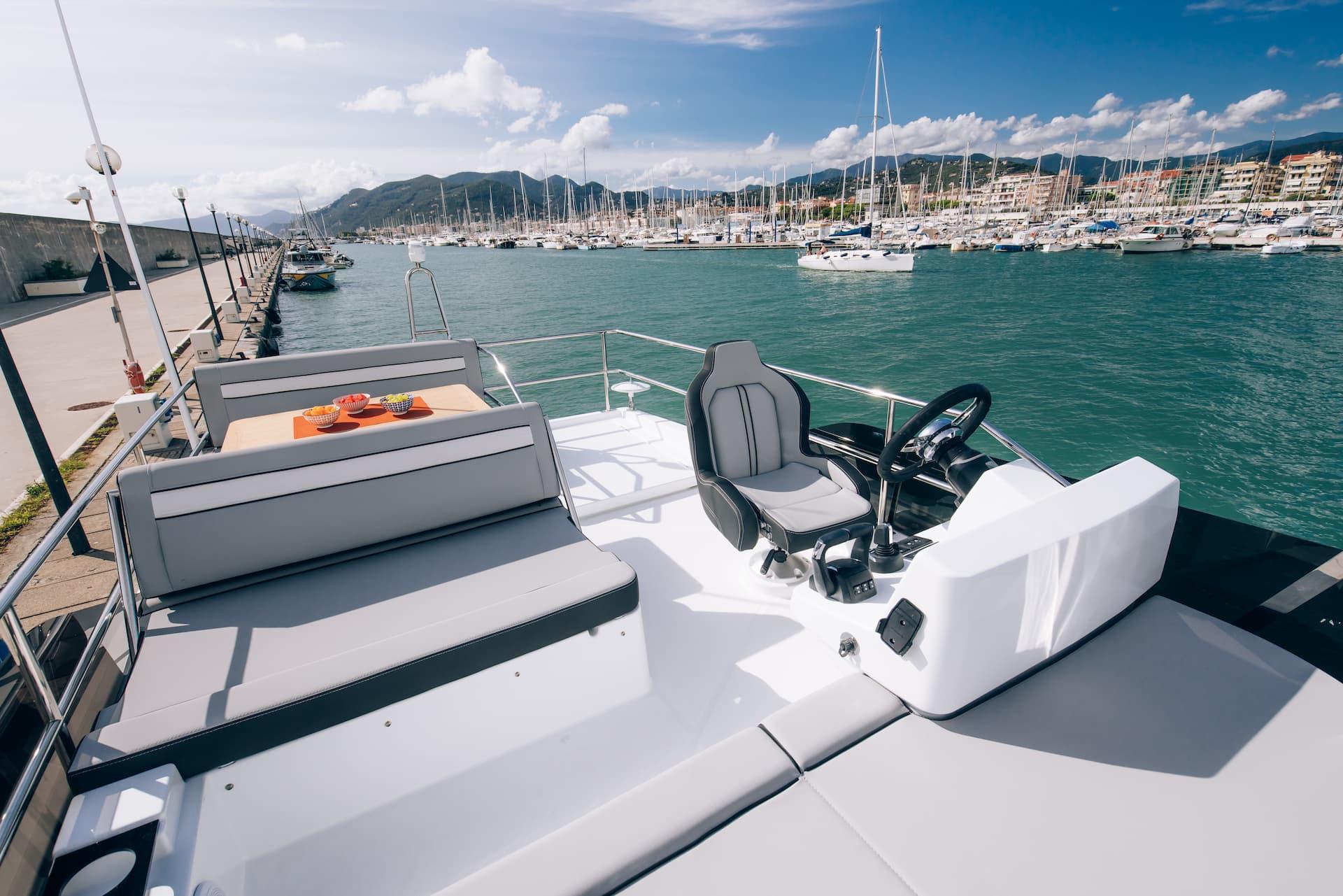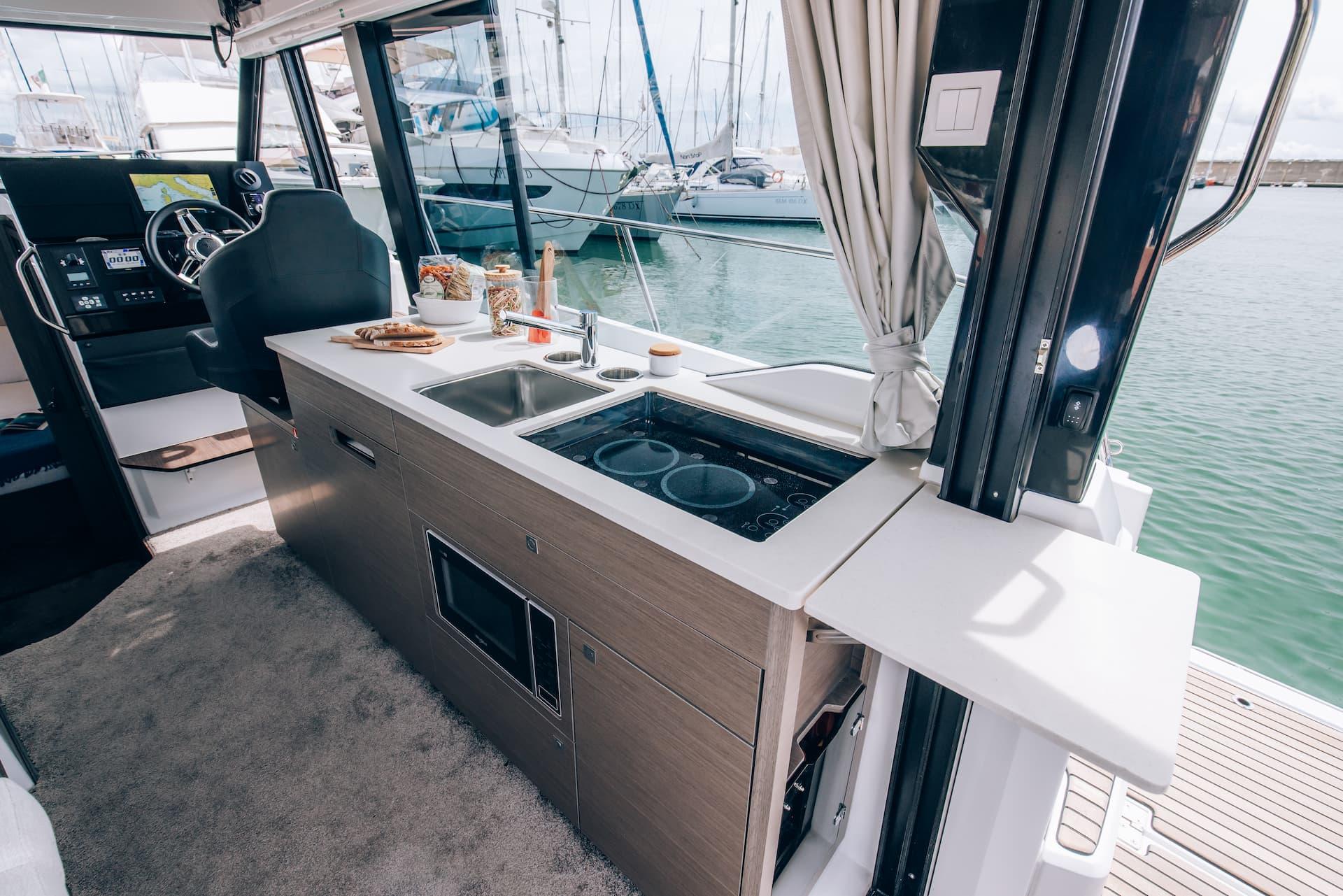 A portside door enables you to welcome guests aboard with easy access from the dock.