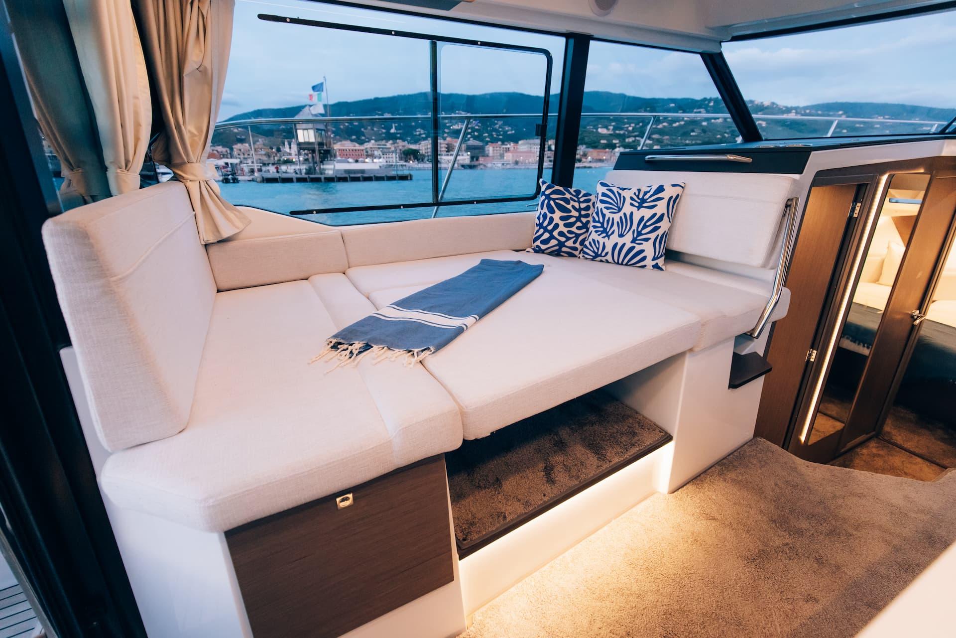 Forward, the Merry Fisher 1095 Flybridge Series 2 features a true living area, unique for this category.