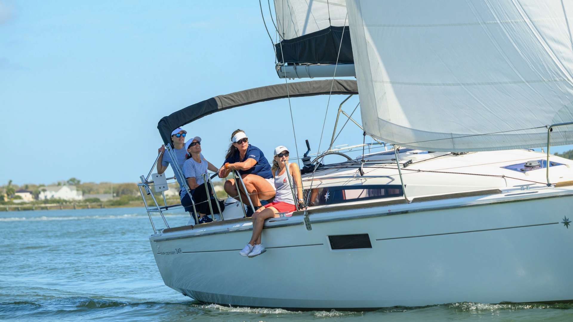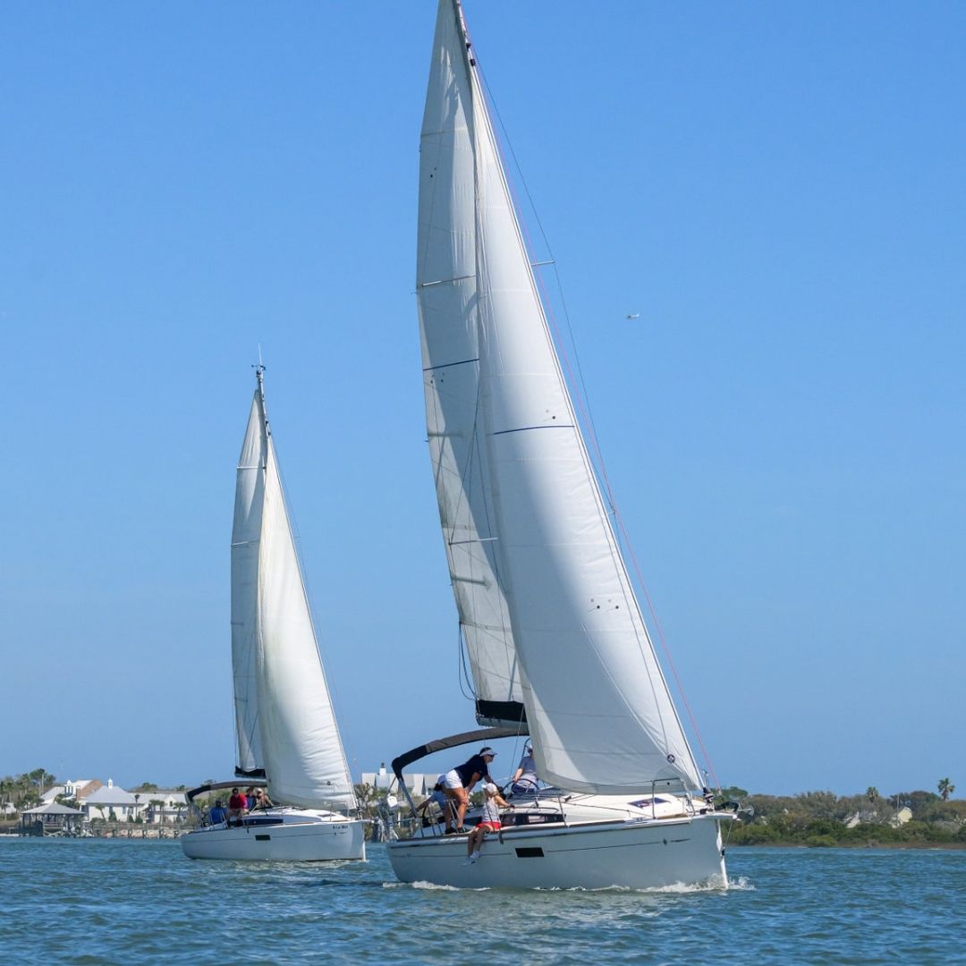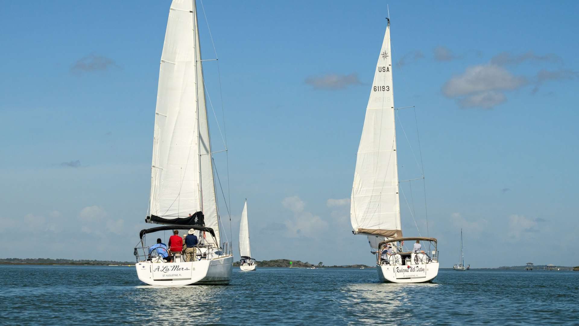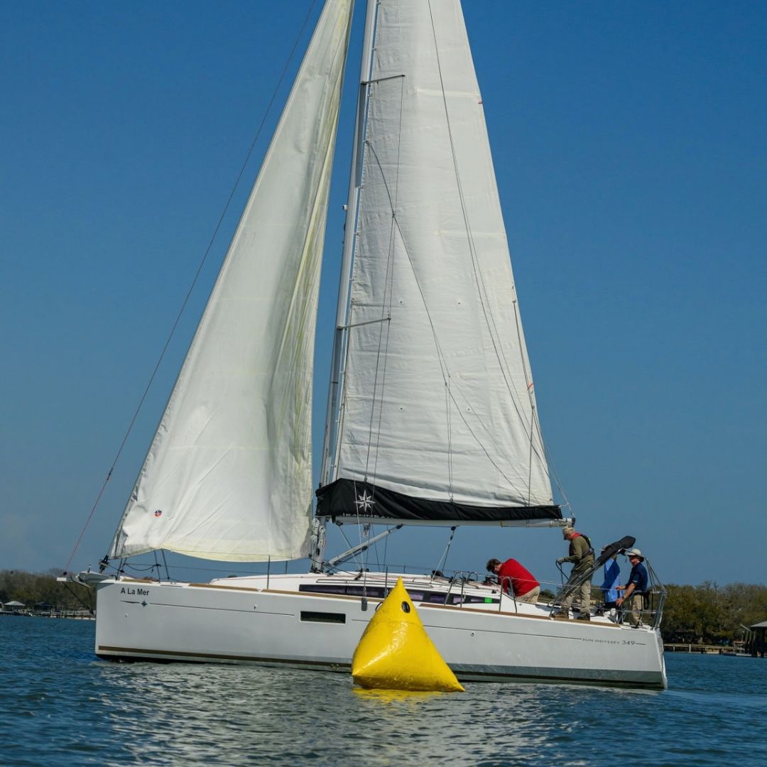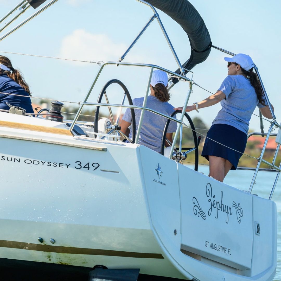 Aboard Zephyr, a Jeanneau 349, we had Catherine Guidar from Jeanneau America sailing alongside Lisa McDonald (veteran America’s Cup crew), Lisa Mauer (St Augustine Sailing Captain and sailing instructor), and Beth London (from our Women on the Water program). On Rendezvous With Destiny, also a Jeanneau 349, Joan Porter (veteran America’s Cup crew) was joined by Kim Walther (St Augustine Sailing Captain and sailing instructor) and Lauren Schroeder (St Augustine Sailing Captain and sailing instructor). Rounding out the fleet was A La Mer, with Dale Edgar (St Augustine Sailing Captain and Sailing Instructor), Mark Emerson (All Points Yacht Sales salesperson), James Pucket (from St Augustine Sailing Crew Membership Program), and Andrew (the Yacht Rigger) aboard.